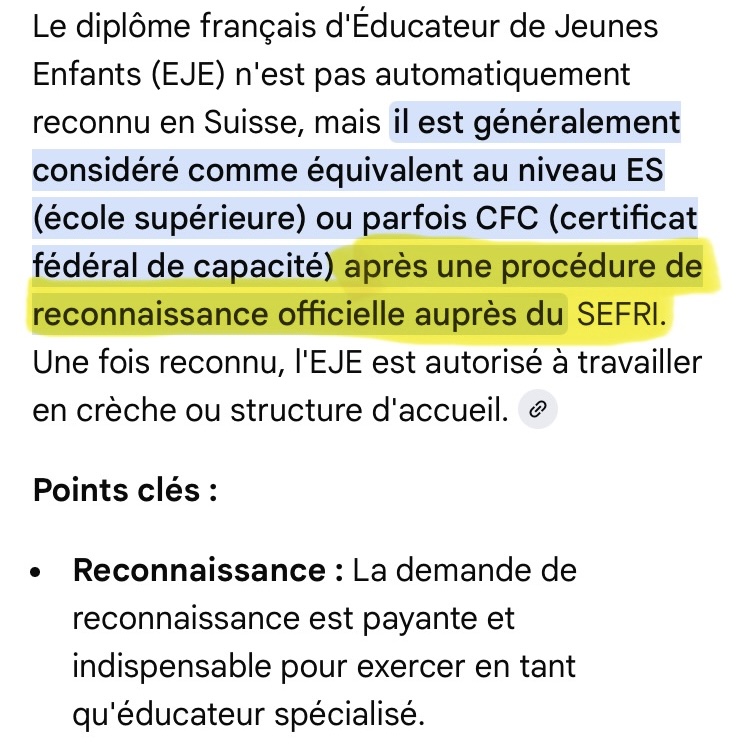 Je n’ai pas fait cette démarche car j’ai lu à plusieurs reprises que le diplôme EJE est valable en suisse