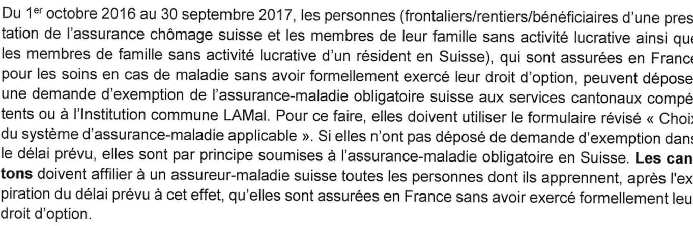 La personne m’a appris que je n’avais en fait jamais rempli ce formulaire de choix, étant déjà frontalier bien avant la réforme de l’assurance santé de 2014.