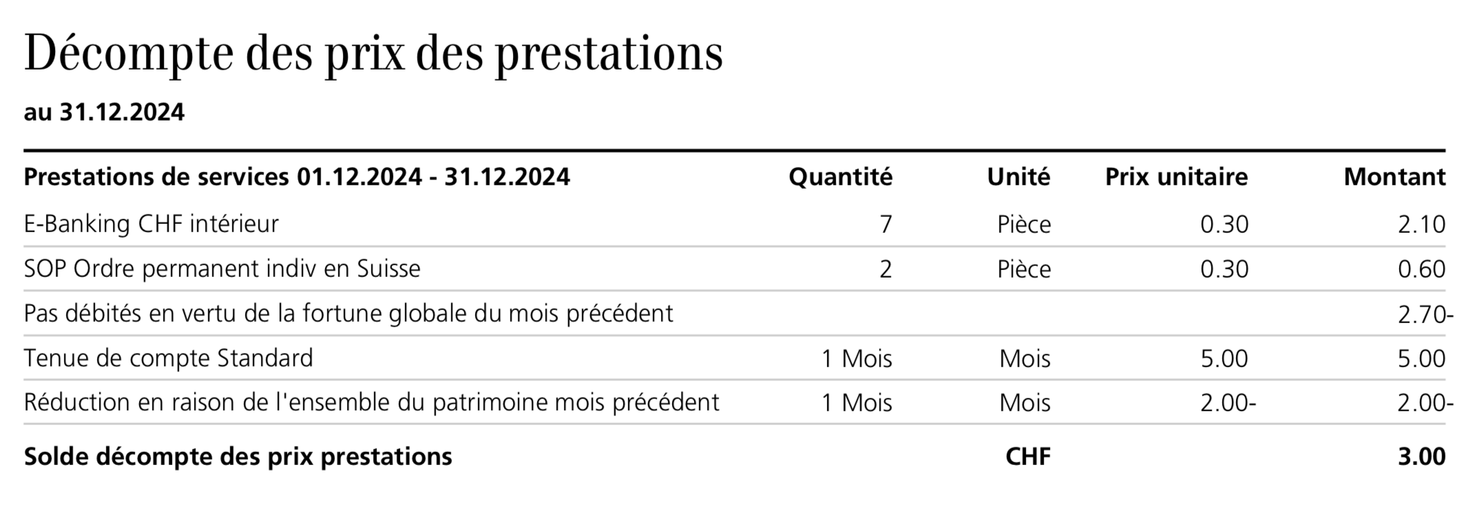 Juste le standard à 8 CHF (-5 CHF en vertu des 10 kCHF que tu as sur le compte et ça fait les 3 CHF). Regarde ici tu as tout: https://www.ubs.com/content/dam/ubs/ch/swissbank/private/zahlen-und-sparen/konten/prestations-et-prix.pdf