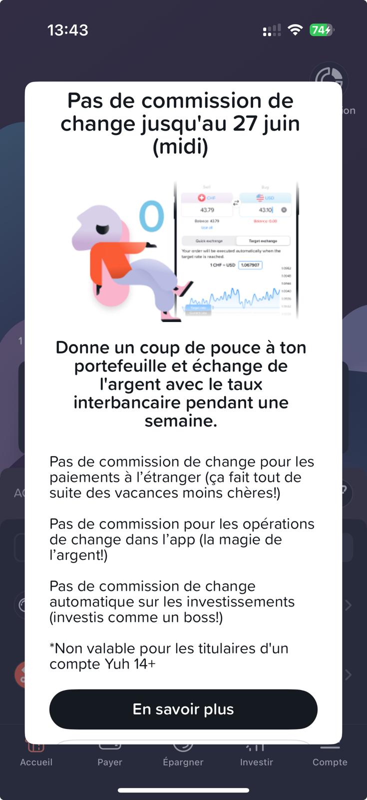 YUH fait le change à 0,00% une fois par an depuis plusieurs années