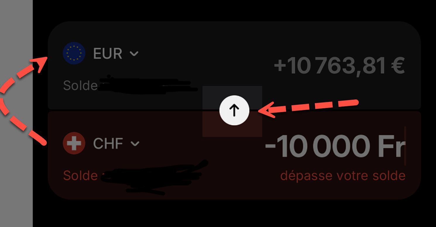 Certes c’est déconcertant présenté dans ce sens, ça dépend si tu déclenches le change depuis ton compte CHF ou compte EUR, mais le résultat final est absolument le même, fort heureusement…